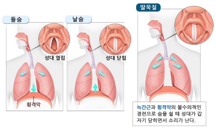 딸꾹질이 날 때, 목구멍으로 공기가 빠르게 들어오면서 성대문이 순간적으로 닫힌다. 이때 나는 소리가 바로 “딸꾹!” 소리다. 딸꾹질이 발생하는 이유는 다양하다. 급하게 먹거나 마실 때, 너무 차갑거나 뜨거운 음식을 먹을 때, 심지어는 스트레스나 긴장 때문에도 생길 수 있다.